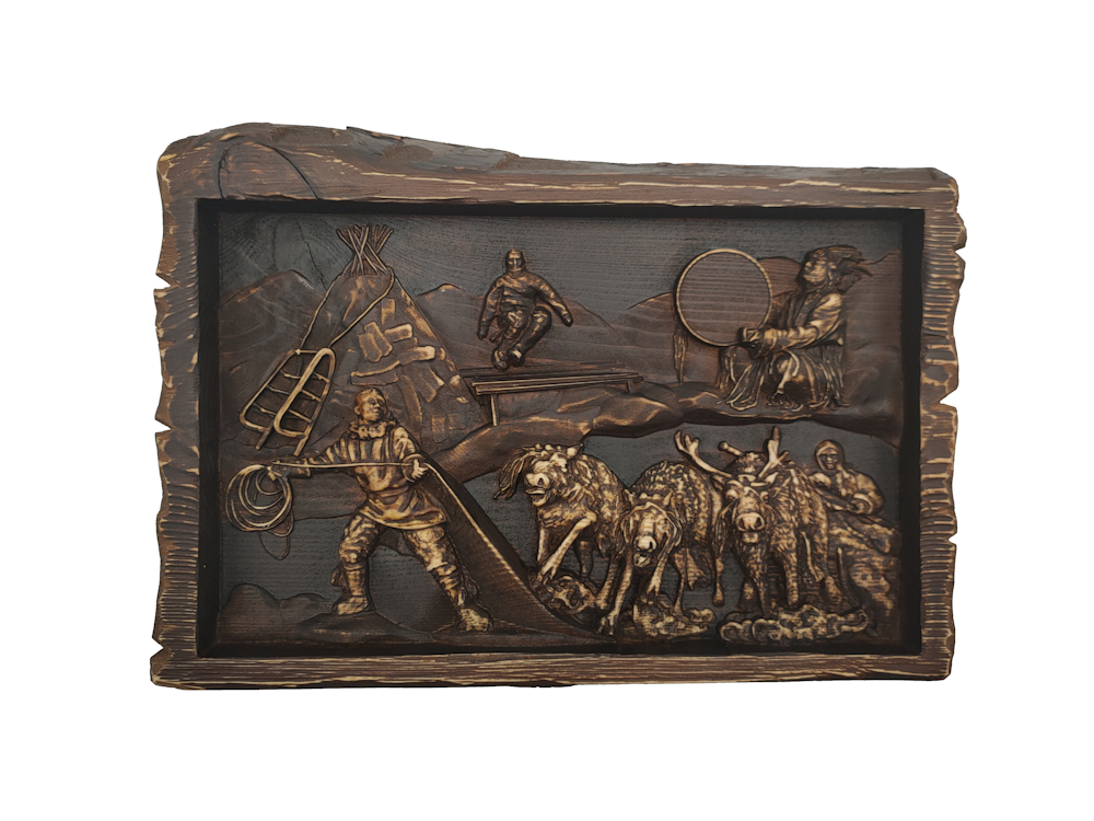Картина "Оленевод" размер 27*40см(хвоя)