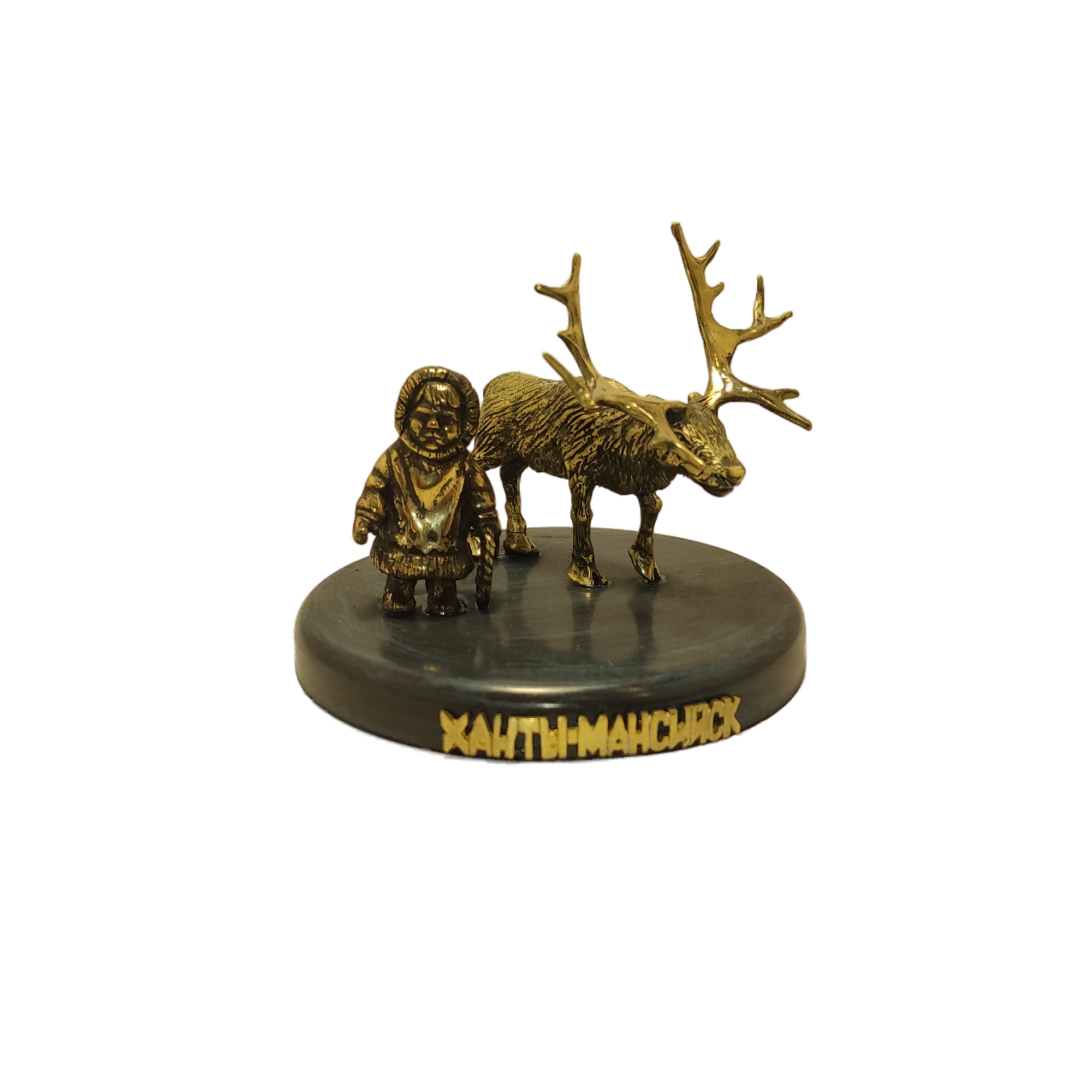 ЛМ Оленевод с оленем, латунь, 55мм, подставка камень