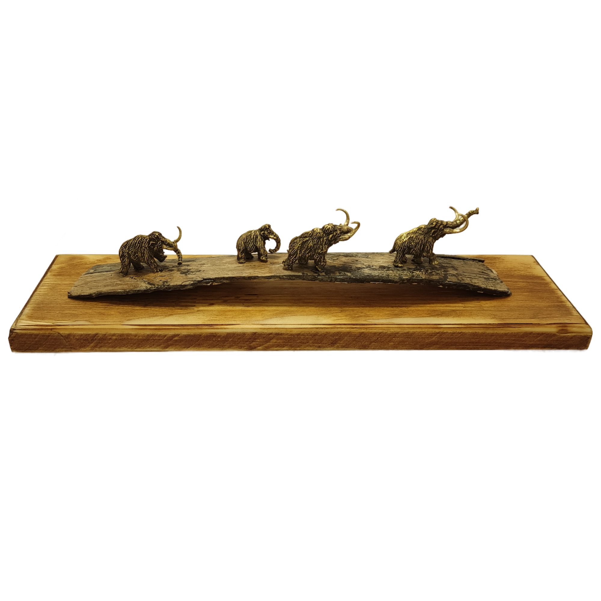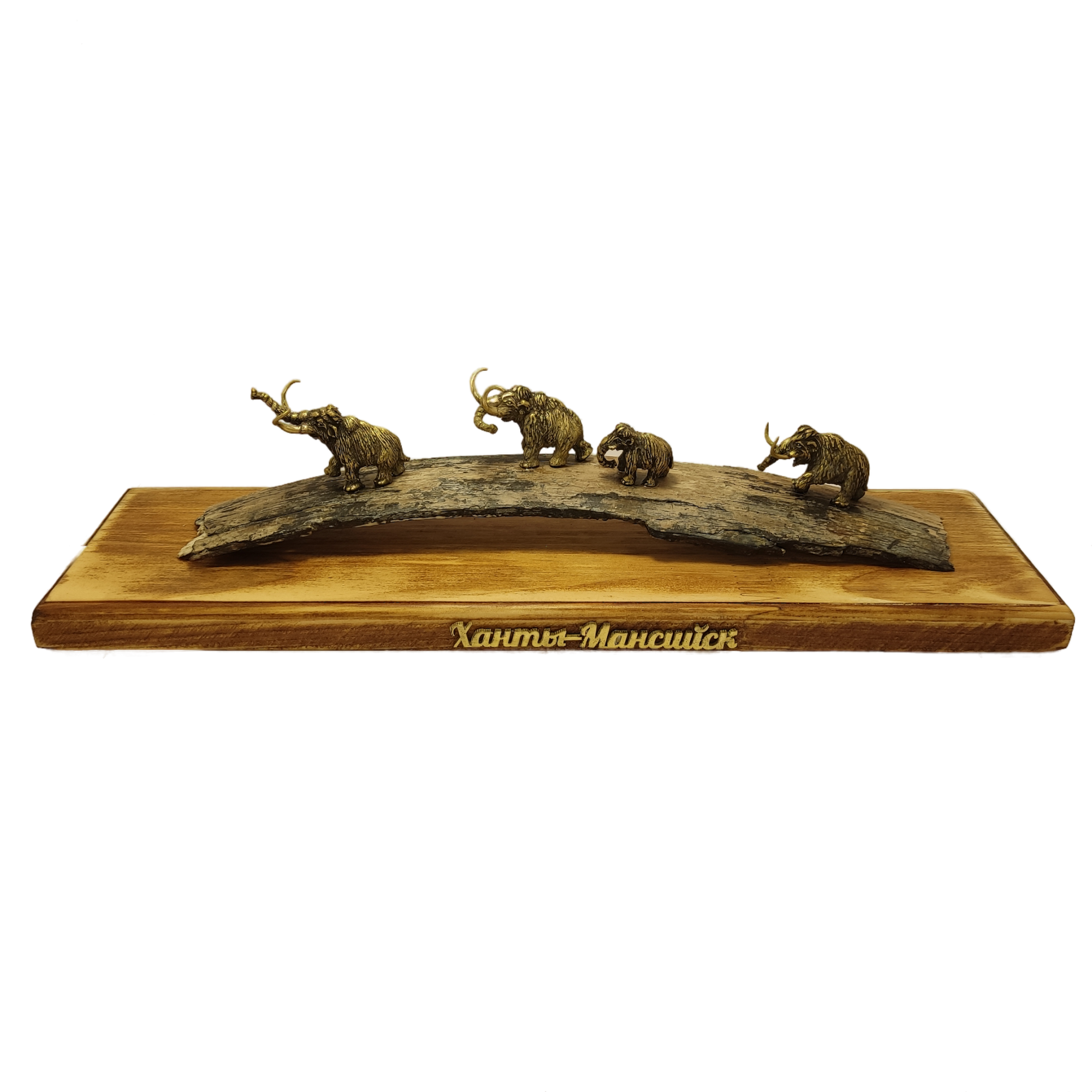 ЛМ Сувенир бивень мамонта (4 мамонта, латунь, подставка дерево), малый